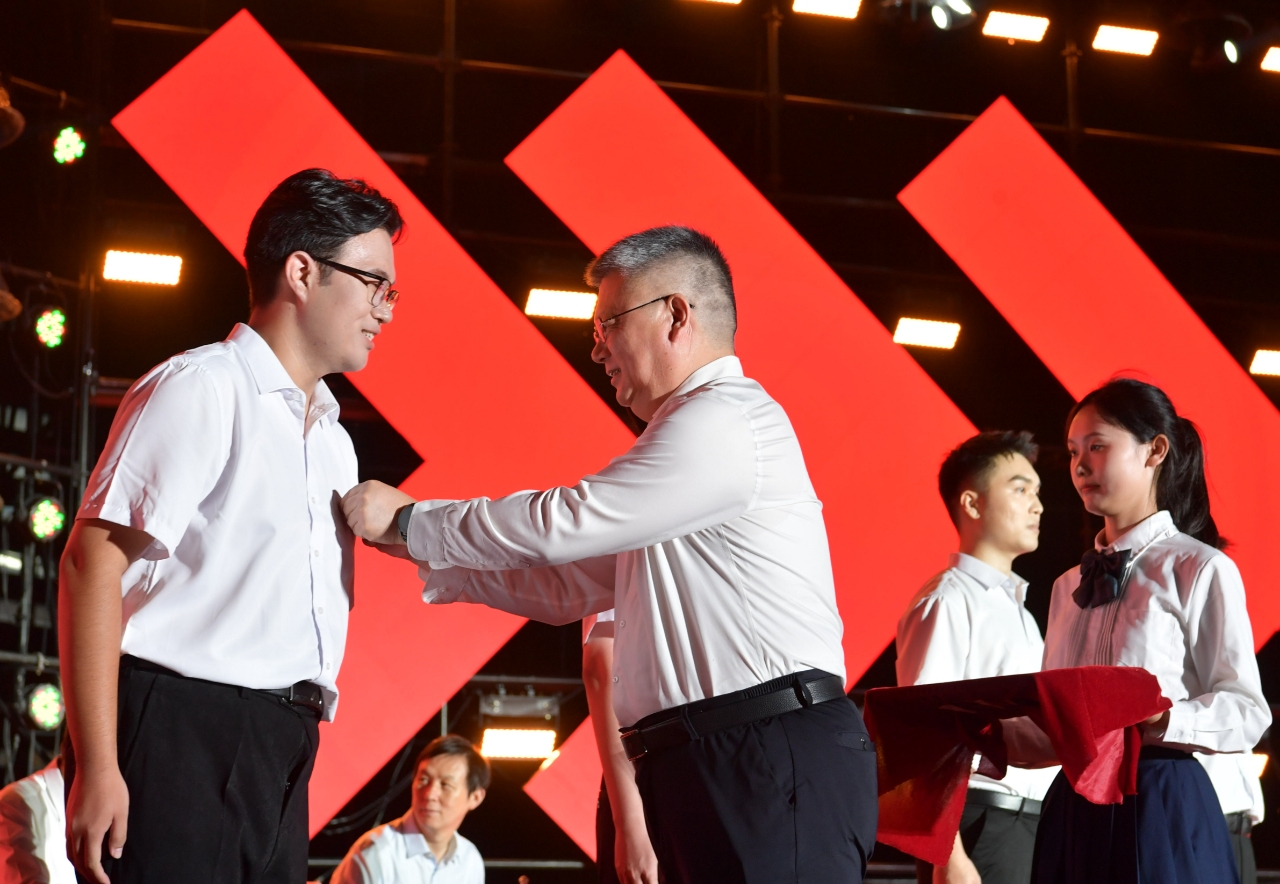 在校生代表,公共卫生学院卫生检验与检疫专业2022级本科生郑宇航、文学院中国语言文学专业2024级博士生关屹在发言中表示,要将个人的成长熔铸于时代的需要,让青春在奋斗中淬炼成钢。