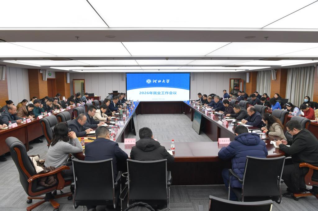 1月23日,河北大学召开2026年就业工作会议,全面总结2025年学校就业工作,分析研判当前就业形势,安排部署2026年就业工作,表彰2025年度学生就业创业工作先进集体和个人。学校党委书记刘兵,党委常委、副校长梁巍、张锋出席会议。