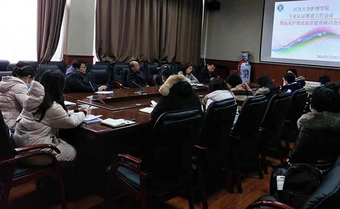 1月19日下午,护理学院在医学教学楼119会议室召开“专业认证推进工作会议暨临床护理实验室建设研讨会议”,学院全体教职员工、附属医院护理部及临床护理课程负责人参加了本次会议。会议由临床护理教研室主任齐新荣主持。
