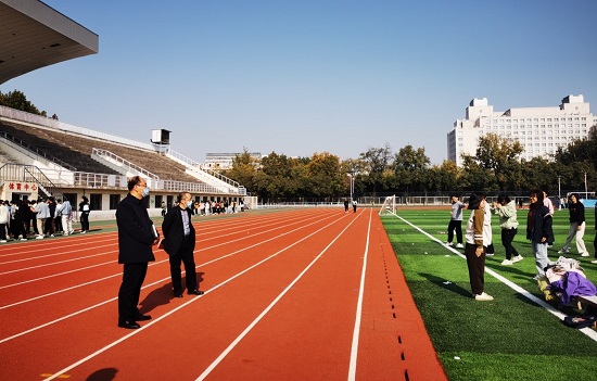 孟庆瑜副校长到操场查看体育课教学情况
