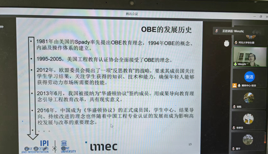 为充分理解OBE理念,更好地应对新时代教育挑战,2022年12月9日下午,我校组织教师参加的“教育成果导向(OBE)”专题报告,比利时根特大学博士生导师廖文志教授受邀作线上报告。