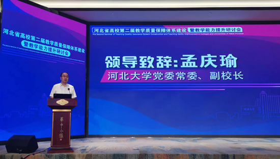 校党委常委、副校长孟庆瑜代表学校对与会人员致以诚挚欢迎,对关心和支持河北大学发展的兄弟院校表示衷心感谢。他强调教育评价是教育事业发展的指挥棒,是实现高等教育高质量发展的助推器,并重点介绍了作为河北省首批教育评价改革试点单位,河北大学在教学质量评价方面的探索和成效。省高等教学学会秘书长、我校教育学院院长胡保利介绍了我省优化“三项制度”、构建高校教学质量监测体系工作开展情况。