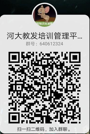 在河大教发培训管理平台登录、认证等使用过程中有问题的,仔细阅读《河大教发培训管理平台登录使用说明》,不能成功登陆认证的加入河大教发培训管理平台QQ群(扫二维码进入) ,有技术人员给予解答。