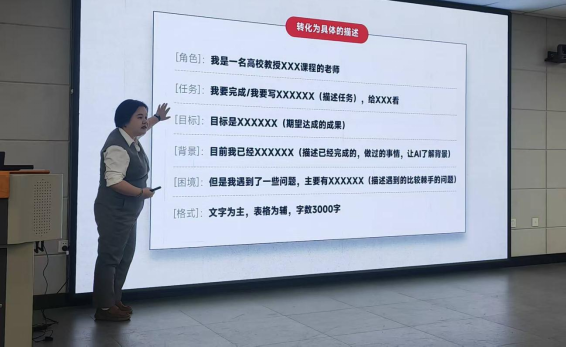 11月13日下午,学校邀请秋叶集团郑远霞开展《AI赋能BOPPPS教学设计》实战工作坊。工作坊从理论解析入手,通过案例拆解和实践操作,帮助教师们掌握AI技术在教学设计各环节的精准应用,探索AI与BOPPPS教学模型的深度融合。