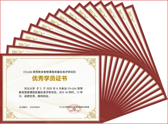 FD-QM高等教育智慧课程质量标准研修“优秀学员证书"