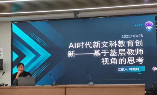 10月28日,哲学与社会学学院副院长林顺利以《AI时代新文科教育何以创新?一种源于基层的思考》为题,从基层教师视角出发,探讨AI时代新文科教育的创新路径。
