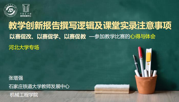 为助力教师参加第四届高校教师教学创新大赛、不断提升教学创新能力,11月24日下午,我校邀请石家庄铁道大学张增强老师做教学创新主题报告,活动依托腾讯会议线上进行,70余名教师参加活动。