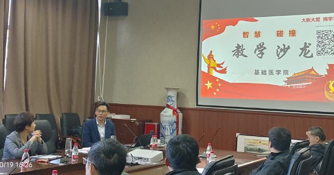 为进一步提高教师的教育教学水平,提升教师创新能力,10月19日下午,基础医学院在医学教学楼119举办了主题为“构建良好沟通, 提升课堂活力,推动教学创新”的教学沙龙活动。活动由基础医学院副院长靳祎主持,本次沙龙的主讲人为第三届全国高校教师教学创新大赛三等奖获奖教师邸科前。