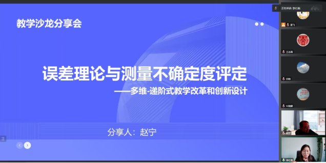 11月17日下午由质量技术监督学院承办的河北大学2022-2023学年秋学期第六期教学沙龙活动以线上形式开展,测控技术与仪器系赵宁副教授以“误差理论与测量不确定度评定-多维-递阶式教学改革和创新设计”为主题展开经验分享,来自质量技术监督学院、电子信息工程学院、管理学院、生态环境学院、物理科学与技术学院、网络空间安全与计算机学院等单位的80余位教师参加本次沙龙活动,质量技术监督学院李红莲副院长主持本次沙龙活动。