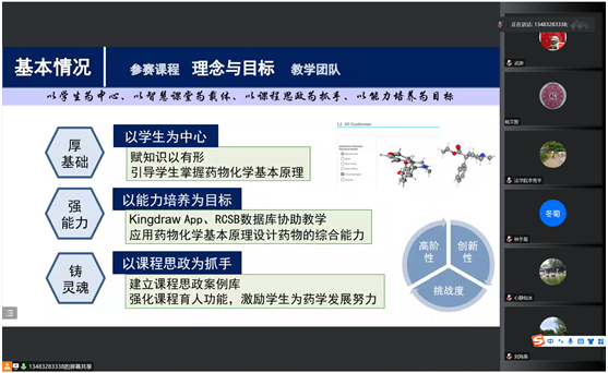 课程是人才培养的核心要素,高等学校教学改革,改到深处是课程。宋亚丽教授首先以药物化学课程的教学改革为例,从教学理念与目标、教学模式、教学方法与手段、评价方式等方面介绍了课程教学改革中的经验和体会。在教学过程中始终围绕“两性一度”和“四新”建设目标进行改革,以厚基础、强能力、铸灵魂为理念,赋知识于有形,课堂教学活动设计围绕“学生中心、产出导向”开展,注重调动学生的学习积极性及能力的培养;采用课堂展示、画结构比赛、问题抢答等多种方式开展课程评价并引入生生互评,形成学习共同体;还介绍了通过回答“有没有贴切的课程导入、有没有激发学生的科学思维、有没有科学设问和有效互动、有没有前沿知识和科研成果的引入”等问题进行课后教学反思的方法。此外宋亚丽教授详细解读了《河北省普通高等学校一流本科专业建设评估标准》及药学专业认证标准。