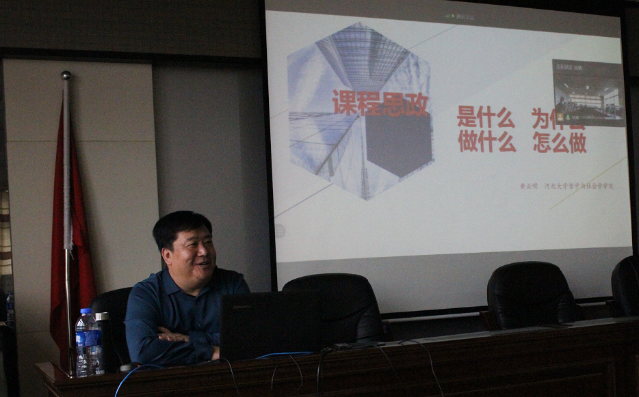 为进一步提升教师课程思政教学能力和素养,哲学与社会学学院与教育教学质量评估与教师发展中心于2020年10月6日下午特邀中国伦理学会常务理事、河北大学黄云明教授为我校教师带来“课程思政:是什么?为什么?做什么?怎么做?”的专题讲座。本次“课程思政”教学沙龙活动上线下同步进行,由哲学与社会学学院副院长林顺利教授主持,哲学与社会学学院全体领导班子、哲学院20余名青年骨干教师、教育教学质量评估与教师发展中心以及我校60余名新入职教师参加本次沙龙活动。