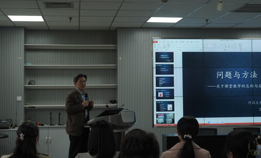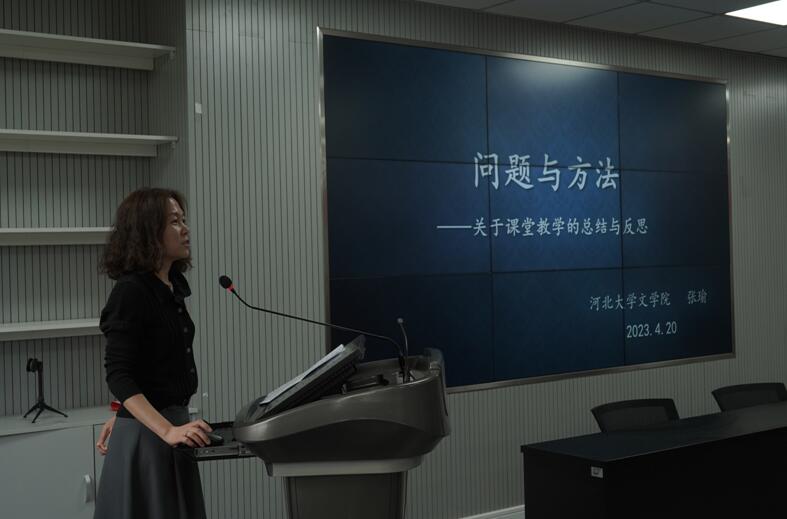 活动第二阶段河北大学督学、现当代文学教研室主任、国家课程思政示范课负责人张瑜副教授进行题为《问题与方法——关于 课堂教学的总结与反思》的专题报告。张瑜老师从课堂教学存在的问题及其原因、解决问题的路径与方法方面,围绕课前准备、课中讲授及课后反思等环节,对青年教师进行有针对性的分析与讲解。