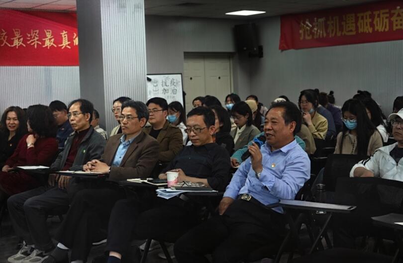 为落实立德树人根本任务,强化本科教学中心地位,提高教师教学能力水平,4月21日上午,文学院在B2-641成功举办“教师教学能力提升专题沙龙”活动。活动由教学副院长李致主持,学院领导、教研室主任、教学督学、特邀教学骨干教师、近五年入职的青年教师以及部分学生代表共70余人参加了本次活动。