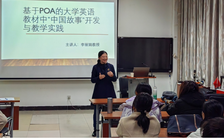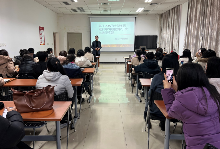 11月28日,“基于POA的大学英语教材中‘中国故事’开发与教学实践”教学沙龙在七一路校区B5教学楼紫峰实训室举行,来自公共外语教学部、外国语学院、国际学院等多个教学单位的30多名师生参会。此次教学沙龙由公共外语教学部李丽娟教授主讲,教学部副主任高华主持。