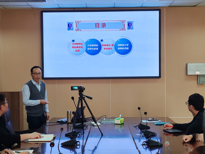 “大学教师是生成大学精神的核心力量,是人类文明之火得以旺盛燃烧的主要传薪者”。任国栋教授结合自身三十余年的从教经历,从大学的办学性质和使命、教师应有的素质和品德、教学科研观、学生培养等方面,阐述一名大学教师应具有的品质和能力,强调大学教师要认清肩负的使命和责任,坚持为党育人、为国育才的教育方针,发扬严谨治学、甘为人梯的精神,做学生为学、为事、为人的大先生。报告引发强烈反响,报告结束后,任国栋教授和与会教师进行了互动交流,现场气氛热烈。
