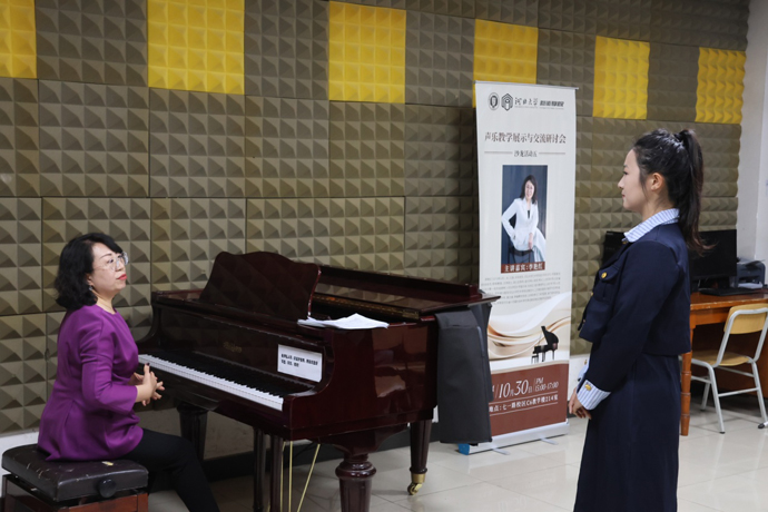 10月30日下午3:00,艺术学院开展“声乐教学展示与交流研讨会”教学沙龙活动。本次活动的主讲嘉宾是艺术学院音乐系系主任李艳红老师,两名音乐系在校生接受了李老师的指导,来自管理学院、教育学院、艺术学院等14个教学单位近40名教师参加。