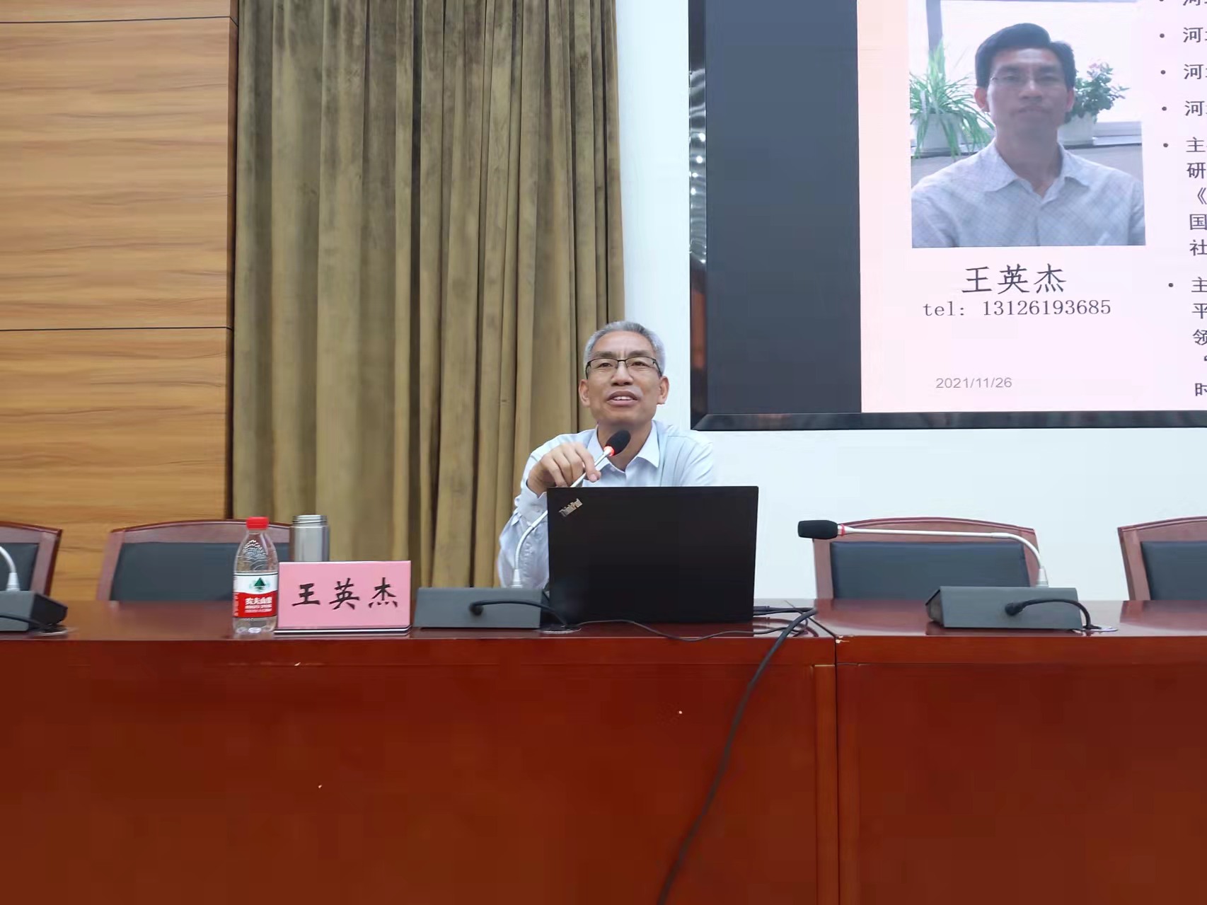 根据河北大学2021年新入职教师校本培训工作安排,11月26日,我校邀请河北省委党校王英杰教授来校做“习近平新时代中国特色社会主义思想”专题报告。