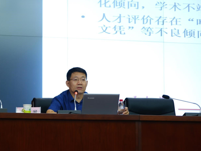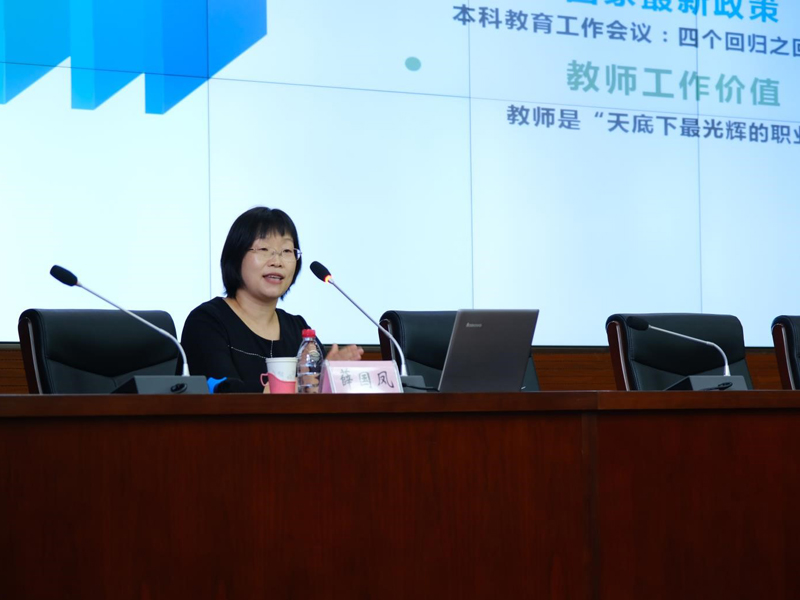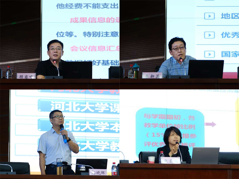 教务处副处长杨晓晖、社科处副处长顾岩峰、科技处副处长秦新英、教评教发中心副主任张爱梅、图书馆副馆长刘丽斌讲解相关政策。