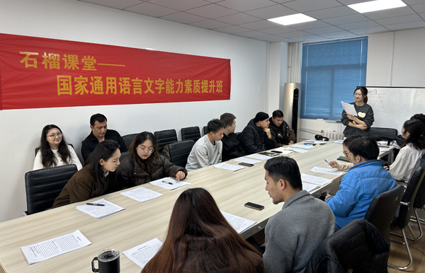11月30日,学校举行“石榴课堂”国家通用语言文字培训班开班仪式暨第一讲,来自各学院、各民族的20余名同学参加了培训,播音主持专业学生孙俪桐从声调和音节基础内容入手,针对不同地区学生的口音问题进行一对一发音指导,以语言互通促进民族交融,助力铸牢中华民族共同体意识。