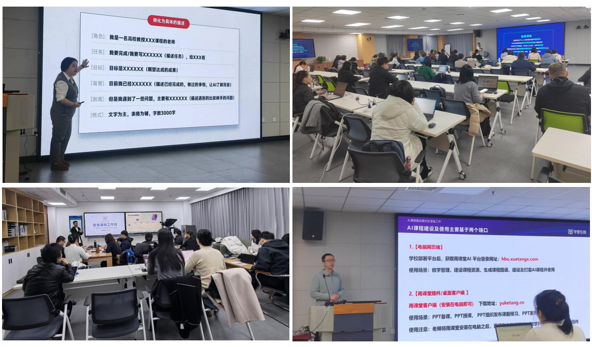 11月6日至12月4日,学校以“人工智能赋能教育教学”为主题,组织开展系列培训活动。组织秋叶集团开展《AI赋能BOPPPS教学设计实战工作坊》《AI Agent智思体开发工作坊》2场,组织超星集团以《一平三端助力打造一流在线课程工作坊》《AI赋能智慧随行·助力课程及教师教学智慧升级提升班工作坊》为题开展实操培训3场,开展基于雨课堂平台的智慧课程建设工作坊1场和智慧树平台的智慧慕课"工作坊2场,扎实推进数字化赋能教师发展行动落地见效。