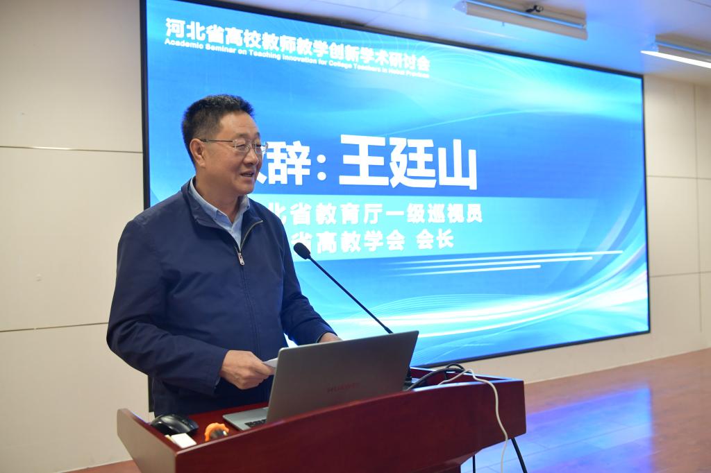 河北省教育厅原一级巡视员、省高教学会会长王廷山出席会议并致辞。王廷山指出,本次研讨会既是对全国高等教育改革精神的积极响应,也是河北省深化教育教学创新、提升人才自主培养质量的具体实践。他充分肯定了河北省高校教师在教学创新领域的倾情投入和取得的丰硕成果,强调要认真贯彻落实全国教育大会和《教育强国建设规划纲要(2024—2035年)》精神,希望与会人员倍加珍惜研讨会的难得机遇,在充分交流中破解教学改革的难点堵点,推动教学创新成果的转化和示范,持续提升教学能力与育人水平。