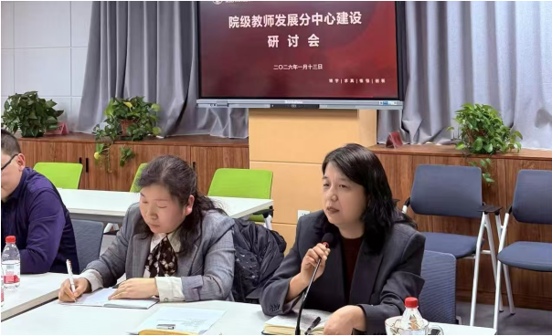 为进一步健全教师发展支持服务体系,提升教师专业素养能力,2026年1月13日下午,我校组织召开院级教师发展分中心建设研讨会,近40名院级教发分中心主任、副主任及骨干教师参会。会议由教研教促中心副主任李韬主持。