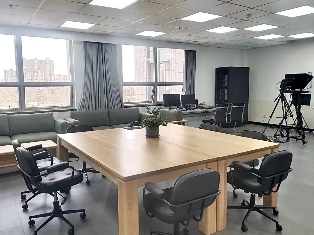 匠心阁位于五四路校区主楼六楼,面积约65平方米,可容纳10-15人。室内配有讲台、蓝绿幕布、录播设备、提词器、小型沙发、会议桌椅、阅览书籍等,可用于录制视频素材、开展小型研讨活动等。