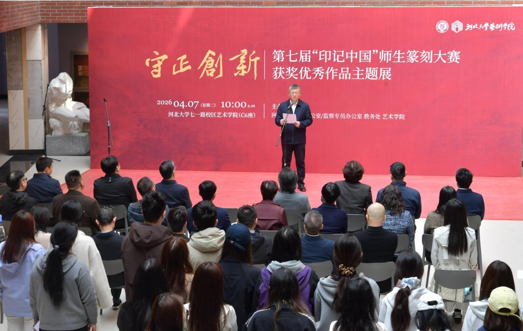 守正创新传文脉 金石流韵育新人。4月7日,“守正创新——第七届‘印记中国’师生篆刻大赛获奖优秀作品主题展”在河北大学艺术学院开幕。学校党委书记刘兵,党委常委、纪委书记、省监委驻校监察专员胡力军出席,各学院党委书记及师生代表参加开幕式。刘兵在致辞中表示,高校作为文化传承创新发展的重要阵地,必须坚定不移地以习近平文化思想为指导,将其精髓深植立德树人的精神沃土,推动新时代高校文化建设工作迈向新高度。学校...