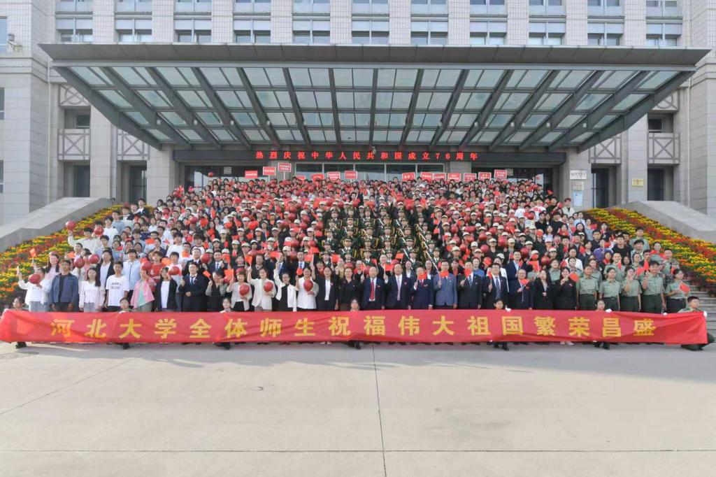 10月1日清晨,河北大学举办“青春向党 奋斗报国”主题升旗仪式,共庆中华人民共和国成立76周年。学校党委常委、副校长张锋出席升旗仪式。党委学生工作部、部分学院学生工作负责人及师生代表500余人参加了活动。