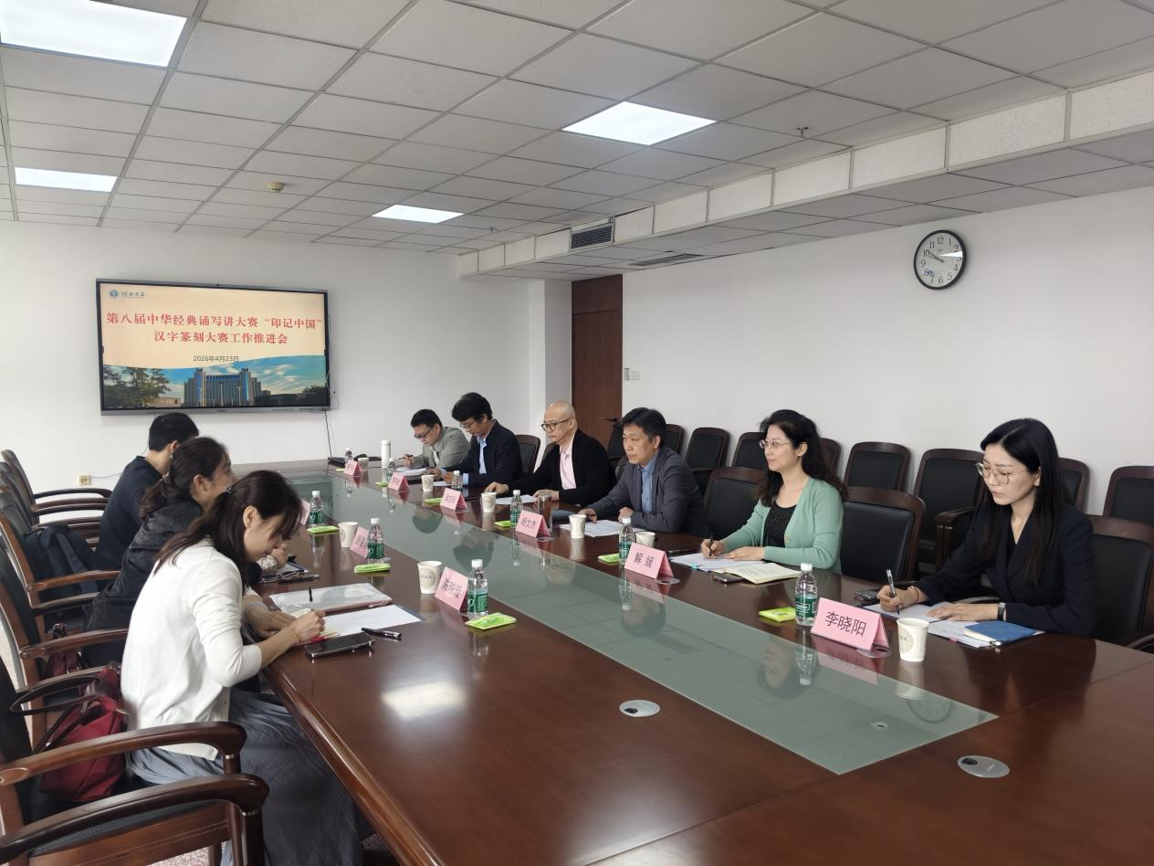 4月23日,我校召开第八届中华经典诵写讲大赛篆刻赛项工作推进会。河北大学教务处、艺术学院以及广东省外语艺术职业学院相关负责同志出席会议。会上,河北大学教务处处长杨文杰代表学校对广东省外语艺术职业学院语委办主任赵春露一行的到来表示热烈欢迎,并介绍了学校近年来在国家语言文字推广基地建设、普通话测试与推广、赛事组织与实施等方面的实践做法与宝贵经验。随后,两校相关负责人围绕大赛组织流程、宣传推广、评审标准、成果展示等核心内容展开深入交流,明确了两校需共同推进的重点工作及具体分工安排,为赛事顺利举办奠定坚实基础。