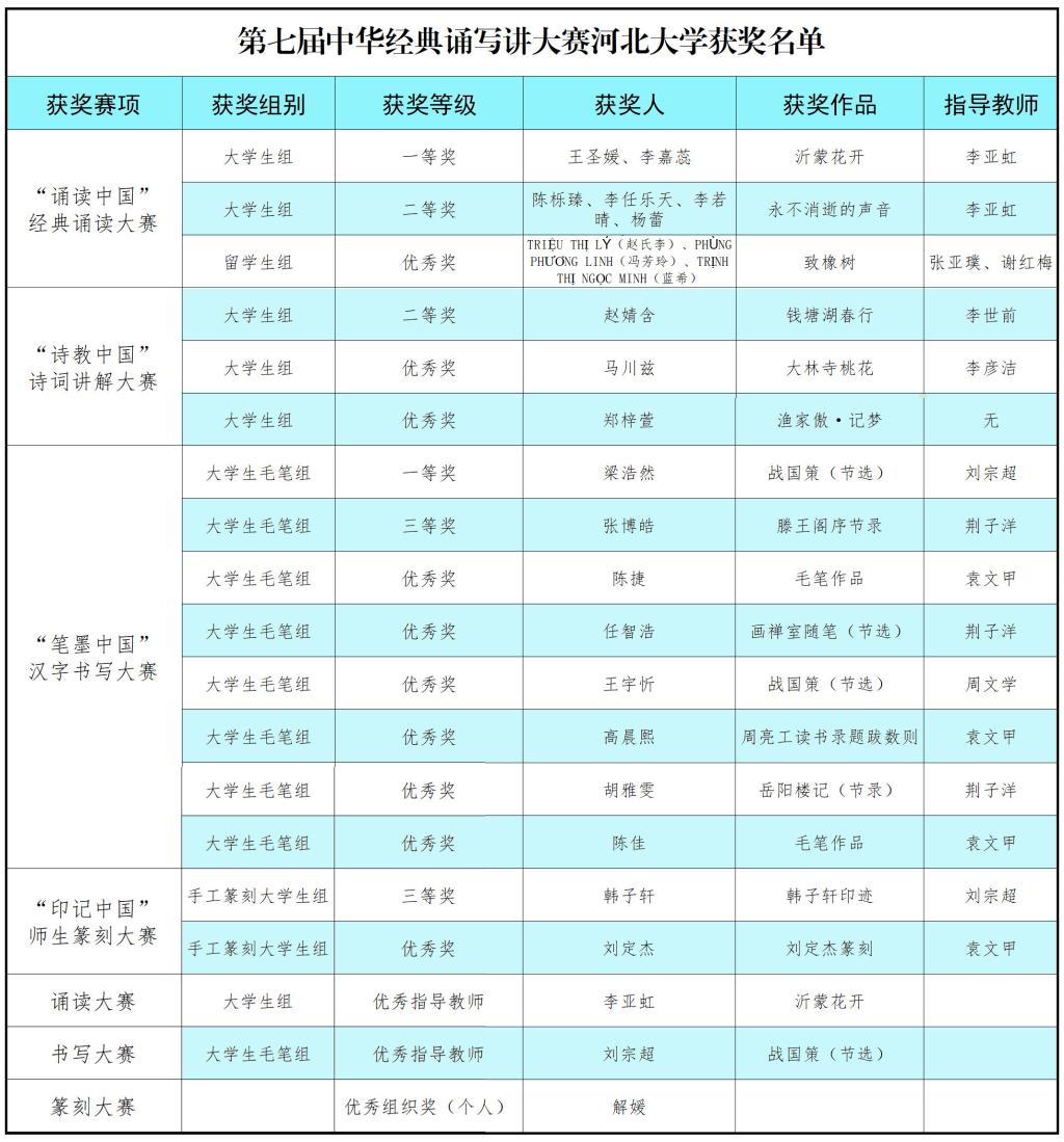 作为国家语言文字推广基地,河北大学将以此次赛事佳绩为契机,持续深化中华优秀传统文化教育,丰富校园文化内涵,提升学生文化底蕴与审美素养,扎实推动中华经典诵读工程走深走实,为服务落实立德树人根本任务、传承发展中华优秀文化和构筑中华民族共有精神家园贡献河大力量。