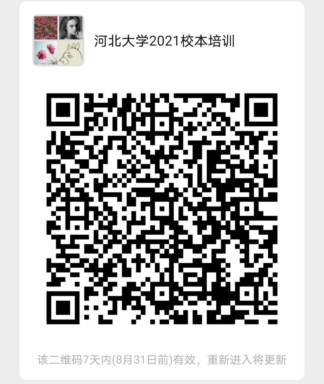 3.参培教师请扫码进入“河北大学2021校本培训群”(微信群),后续详细通知以及结业要求、培训咨询等将在群内完成。